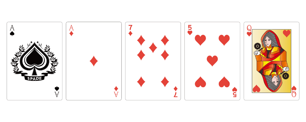 例:AA892とKK347の勝負の場合、KよりAの方が強いためAのワンペアを持つ方が勝ち。